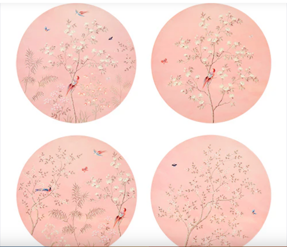 Exclusively designed by Sarah & David Ross, our soft pink Chinoiserie Lacquered Placemats are finished with 20 coats of high glass lacquer, hand polished between each coat. Measuring 15x15 inches, beautifully gift boxed set of 4. Keep out of direct sunlight. Do not place scalding hot items on top. Clean with a soft damp cloth. Do not immerse in water.