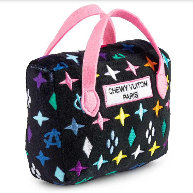 Bring home the handbag toy that has all the Parisian pooches barking ?Chew l? l??! Our black monogram Chewy Vuiton plush toy features a black exterior that?s a timeless classic in furry fashion, paired with a fun hidden squeaker inside. Put them together and you get a houndbag that?s forever en vogue!