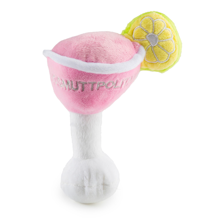 If your pup loves to pawty, then give them the Cosmuttpolitan plush toy! Our barktender makes these with an extra shot of fun, with a shape that fits perfectly in your pooch?s mouth plus a hidden squeaker inside that makes any playtime a happy hour!