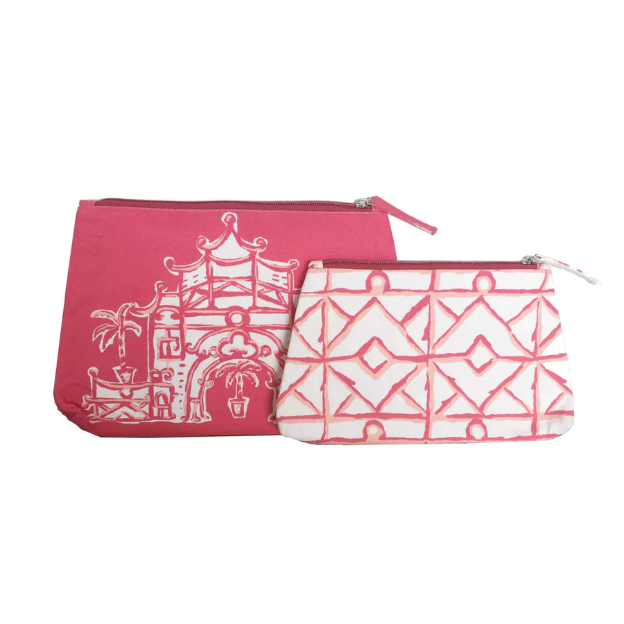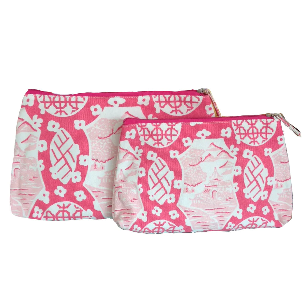 Whether your travels take you to far flung locales or a business jaunt to Nebraska, our pouches keep you and your things organized. . Block printed on a lovely canvas ground in vivid color. So easy to find!!