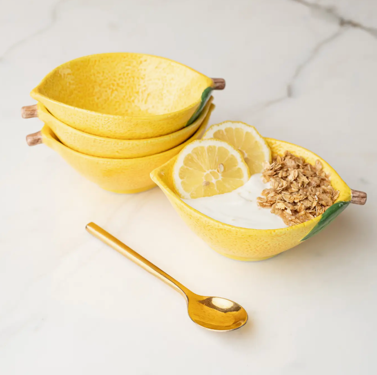 Introducing our Lemon Bowl – a perfect addition to your kitchen collection. Our contemporary classic design is made for real life, with effortless style and an eye-catching look. It’s crafted from premium ceramic for a mix of convenience and aesthetic value, and its large size is ideal for serving up lemony treats like lemon squares, pudding cups or even fresh fruit salads. Featuring beautiful textured accents and classic shape, it’s guaranteed to enhance your countertop setup. The convenient dimensions measure 6" x 4.75" x 2.25", allowing you to serve plenty of generous portions without taking up too much space in your cupboard. It’s time to add some zesty flavor into the mix – enjoy wholesome desserts or savory morsels with our Lemon Bowl! Amazing gifts for birthdays, graduation, housewarming, Christmas, Mother's Day, Valentine's Day, & many more special occasions!