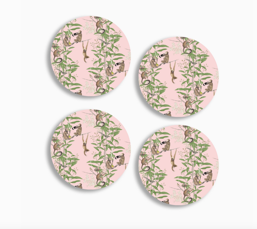 Protect your surfaces in style with our set of coasters. Made from ceramic, these coasters are perfect for keeping your tables safe from water rings and spills. Whether you're enjoying a cup of coffee in the morning or a cocktail in the evening, our coasters make the perfect accessory for any beverages. Set of 4 ceramic beverage coasters. Corked bottom. 4" x 4" round.