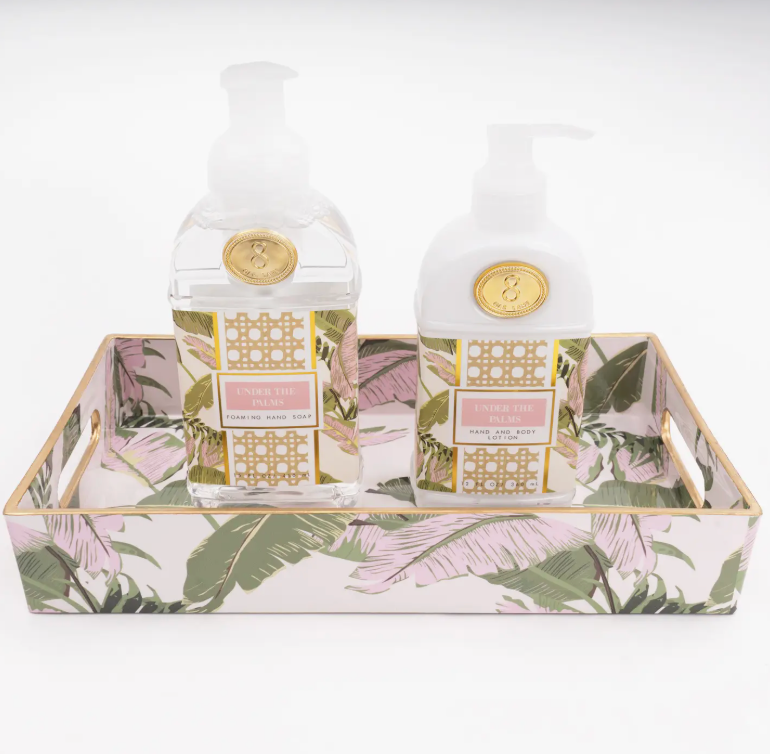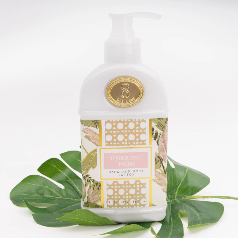 Introducing our luxurious Hand & Body Lotion with nourishing shea butter in our captivating Under the Palms fragrance, a delightful blend of herbaceous grapefruit, citrusy bergamot, green leaves, fresh mint, & warm amber. This hand & body lotion is here to elevate your moisturizing experience & transport you to a world of refreshing indulgence! Crafted with meticulous attention to detail, this luxurious hand & body lotion hydrates effortlessly, turning every pump into a soothing experience. Packaged in a stunning and generously sized bottle featuring an intricate botanical print, making it an elegant addition to your home decor or the perfect gift. Not only does this luxurious hand & body lotion boast a captivating fragrance and impeccable aesthetics, but it also delivers quality.