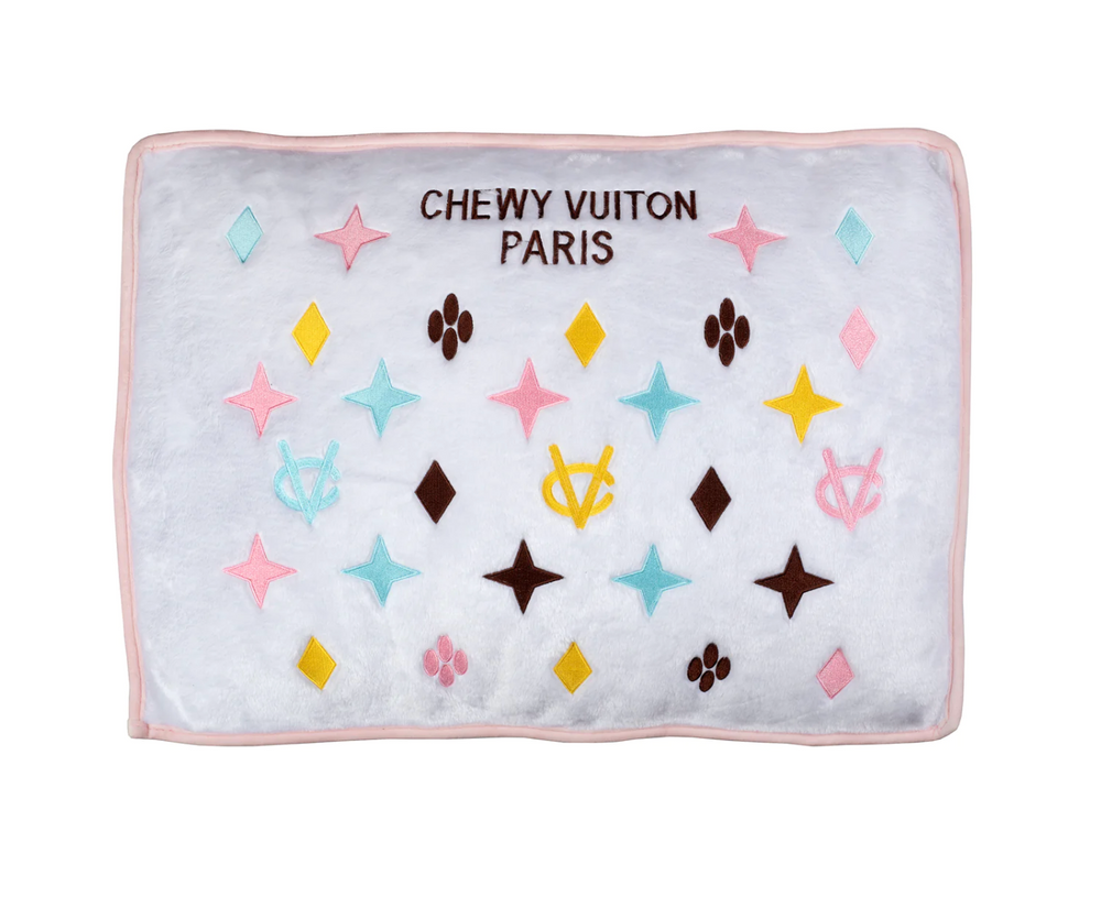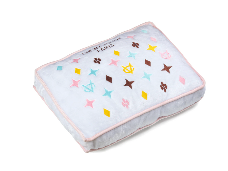 Let your lap dog lounge in luxury with our Chewy Vuiton Bed! We put the fur in comfort by placing the softest stuffing available within a velvety, plush fabric exterior. And the opulent monogrammed accents and soft pink piping make this pet bed as elegant as it is comfortable! Perfect for the luxurious slumber of our spoiled furry friends.