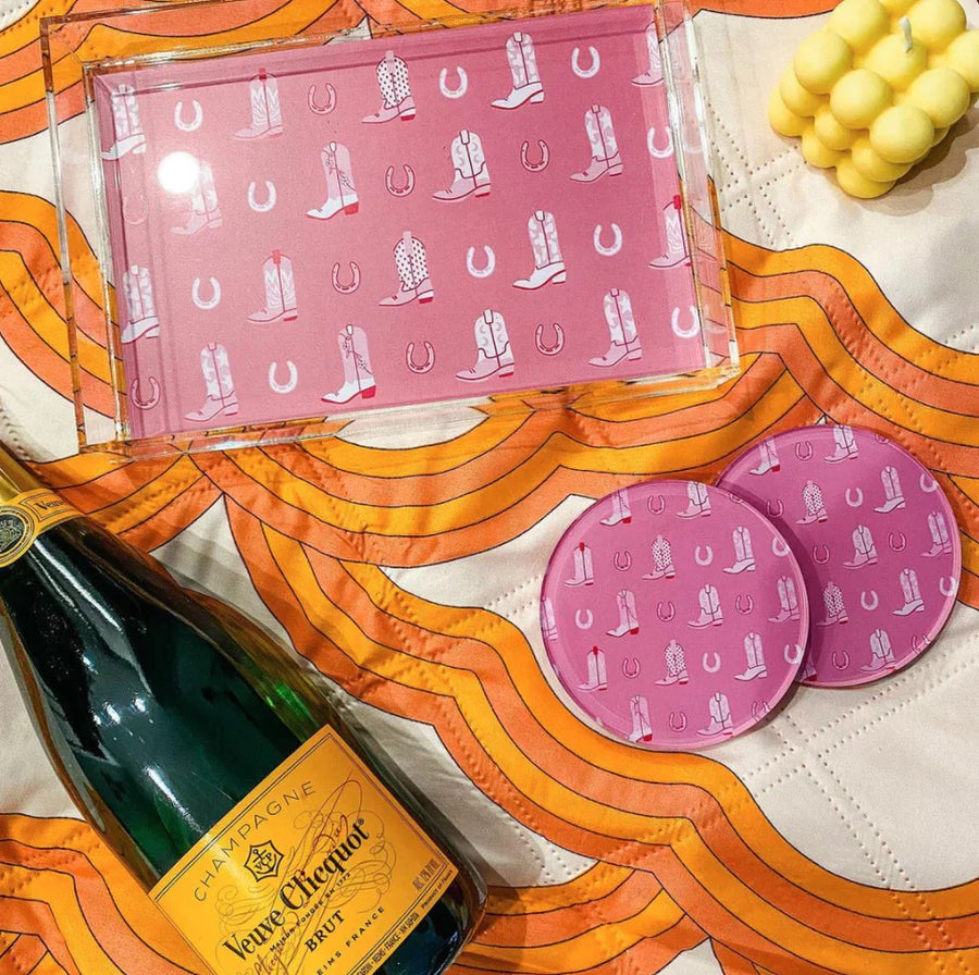 These acrylic coasters protect your tables and counters in style while adding a pop of color to any room. The bold design is perfect cheers to anyone who knows how to have a good time.