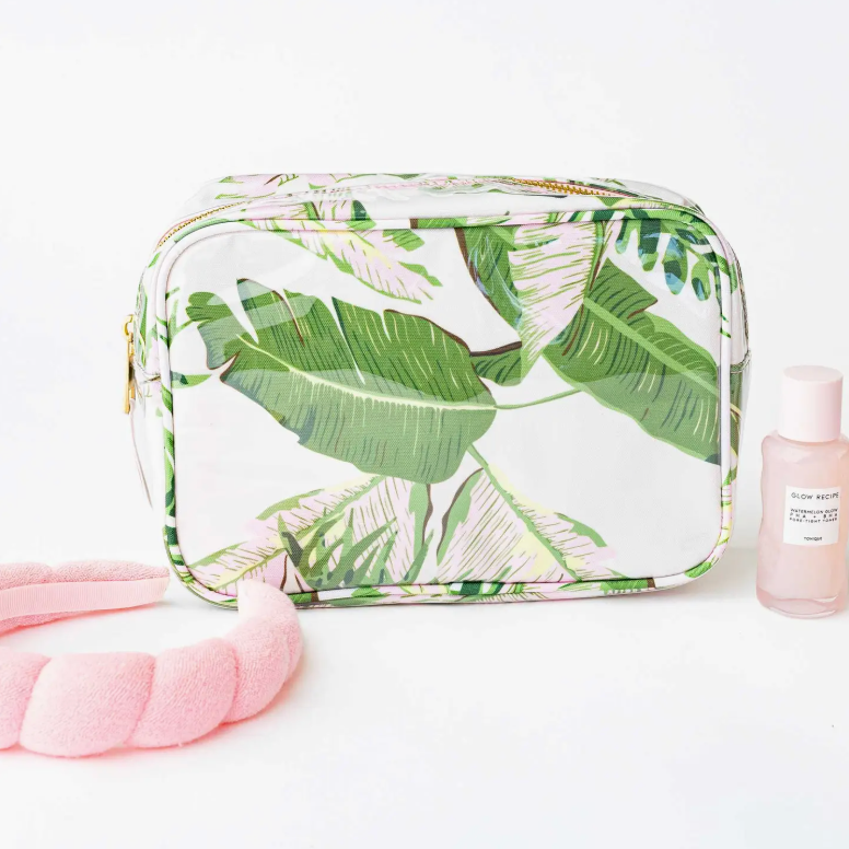 Discover elegance & practicality with the Natural Botanical Clear Coated Rectangular Cosmetic Case. Designed for the modern traveler, this chic case offers ample space at 8.75 x 6 x 3 inches to store all your beauty essentials. Crafted from durable PVC & polyester, it boasts a sleek, glossy finish that effortlessly combines style & function. The gold metal hardware adds a touch of sophistication, while the secure zip closure ensures your items are safe & organized. Inside, the fully lined, wipe-clean interior makes it easy to maintain pristine condition, even after inevitable makeup mishaps. Proudly designed in the USA & imported, this cosmetic case embodies quality craftsmanship, offering a perfect blend of luxury & convenience for those who value both beauty & utility in their daily routines.