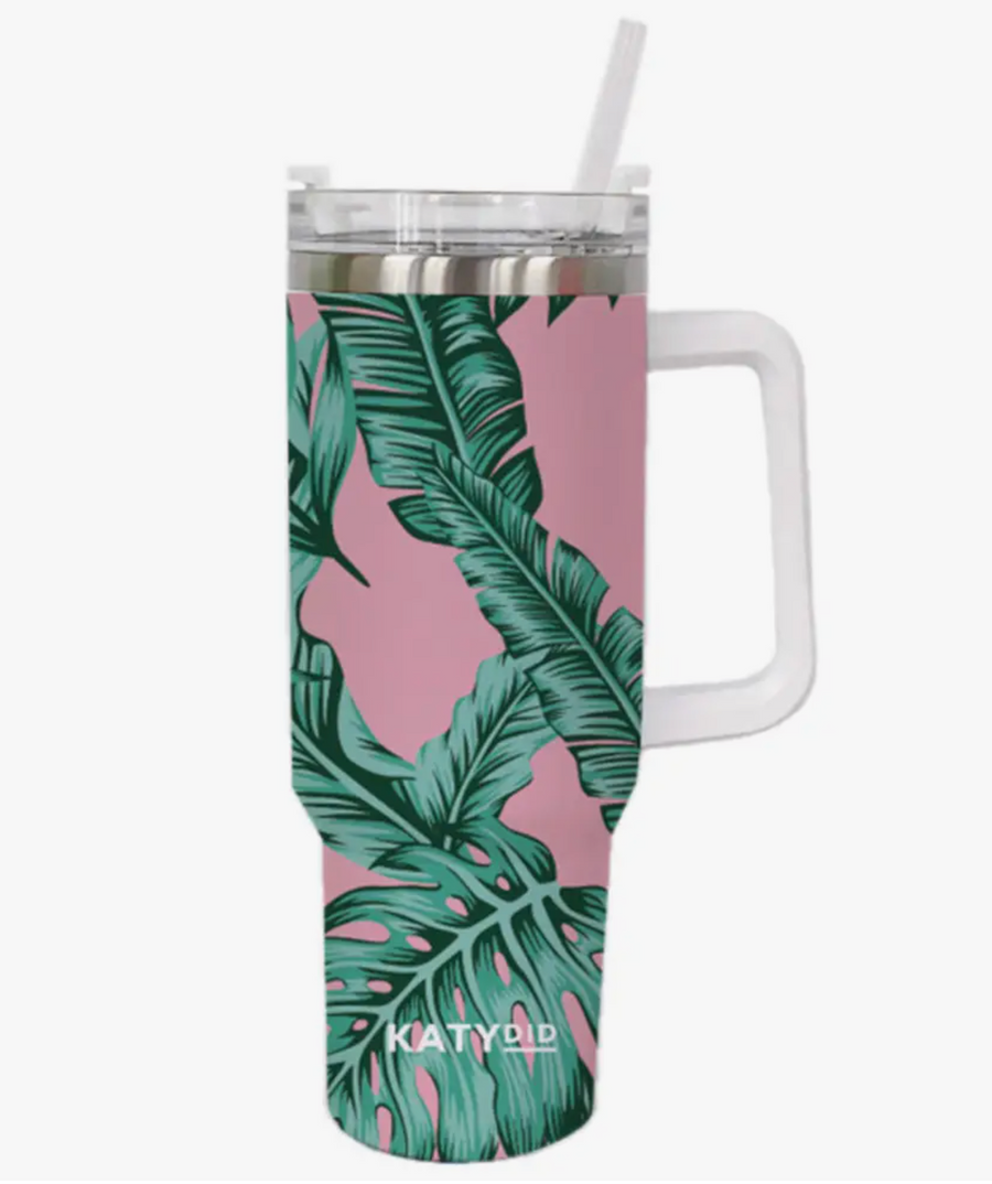 Enjoy your cool, calming beverage with our new Tropical Leaves Stainless Steel Tumbler! Whether you’re sipping on coffee, tea or something more exotic, this modern tumbler is sure to keep your drink the perfect temperature for longer than ever before. This super popular tumbler cup is made from stainless steel and designed with a handle for maximum efficiency. Not only will it make your favorite drinks look great, but it also comes with a reusable drinking straw so you can skip single-use plastic whenever you take it out for a spin! Perfect for any outing or at home use, our tropical leaves tumbler cup holds an impressive amount of liquid and can be used as a water bottle, coffee tumbler, or travel tumbler.