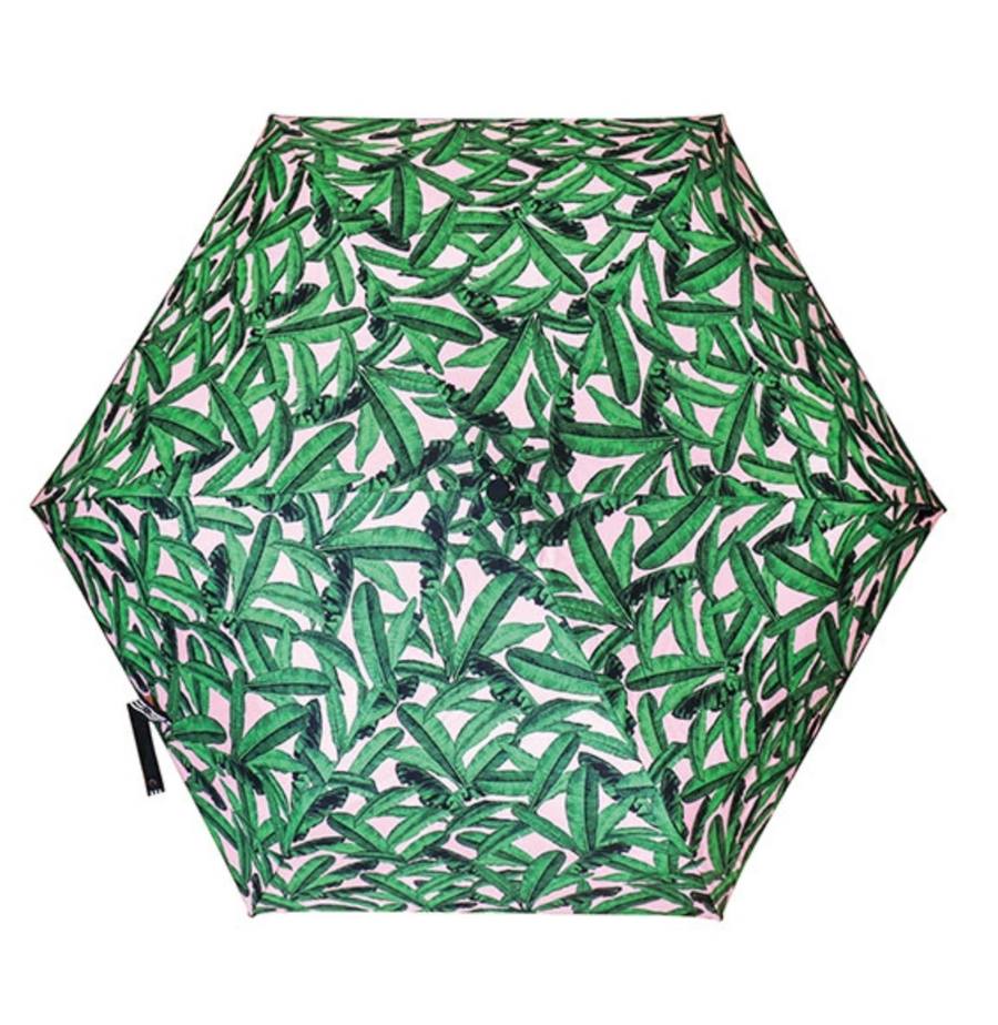 Keep those dull rainy days at bay with this cheerful pink and green leaf patterned umbrella. Folded size: 30.1 x 9 cm