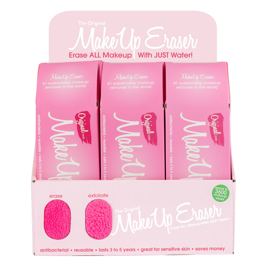 Erase ALL Makeup With JUST Water! Including waterproof mascara, eyeliner, foundation, lipstick, & more! The Original MakeUp Eraser is a premium, patented, polyester cloth made up of millions of tiny hair-like fibers that work together to create a "suction" for all dirt, makeup, & oil in your pores. Double-sided to erase makeup with the short fibers side & exfoliate the skin with the long fiber side (side with tag). Reusable, machine washable, & lasts 3 to 5 years.